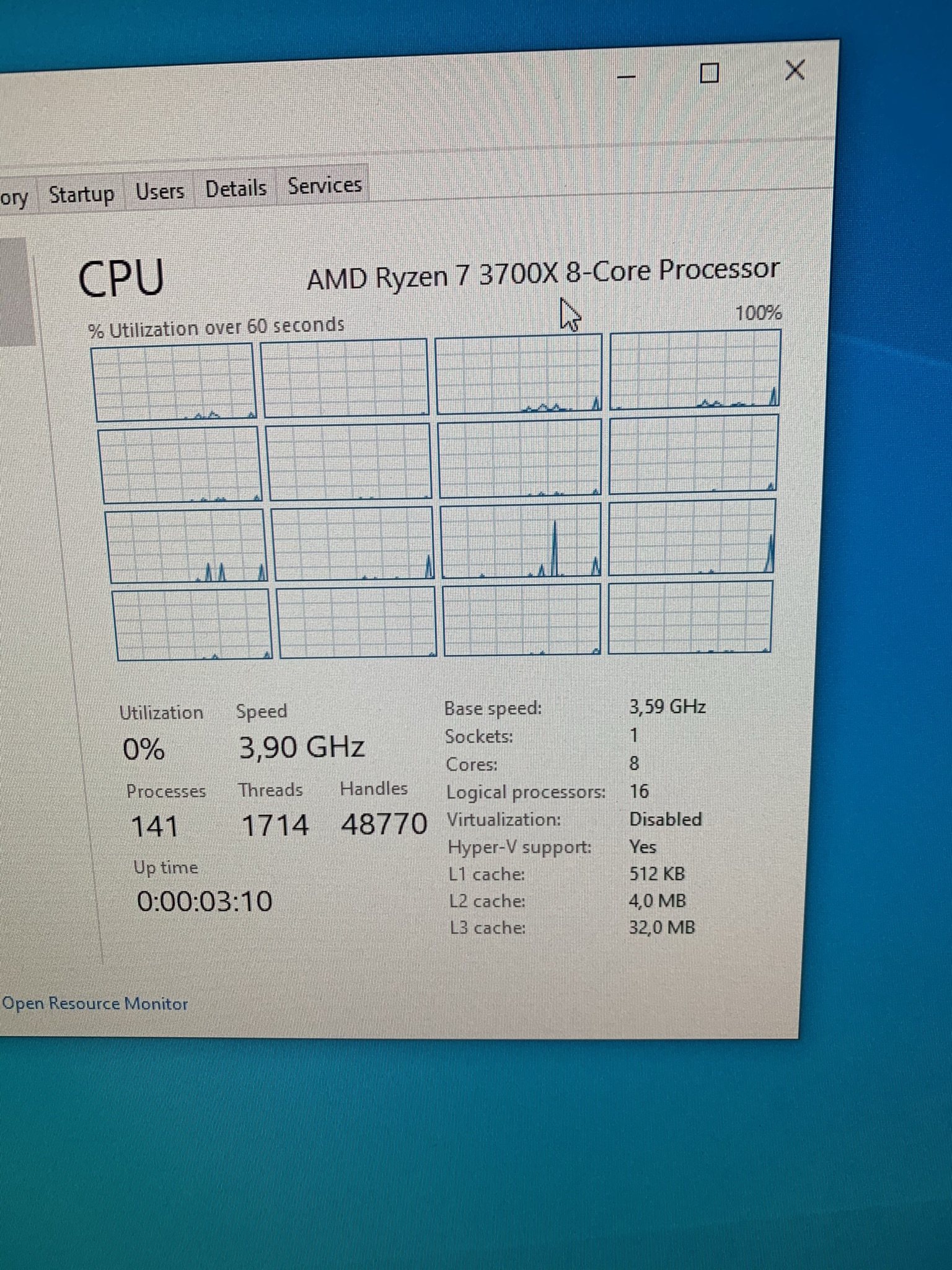- AMD Ryzen 7 3700x (8 cores, 16 threads)