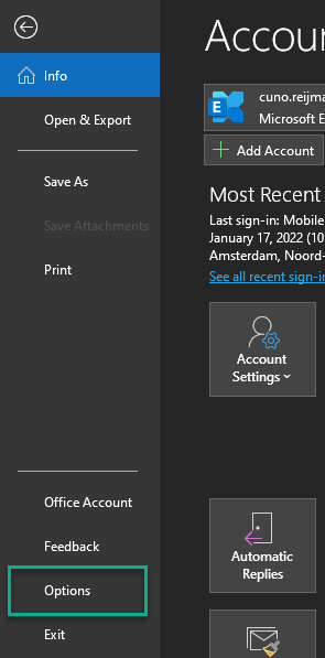 You can find the mentioned outlook settings from ‘File’ -> ‘Options’.
