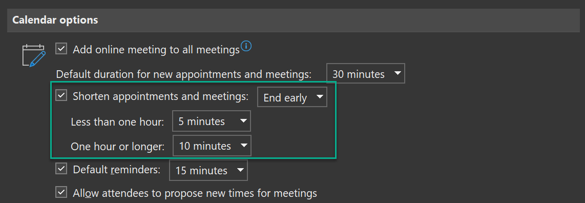 My top 5 outlook calendar settings - 2022