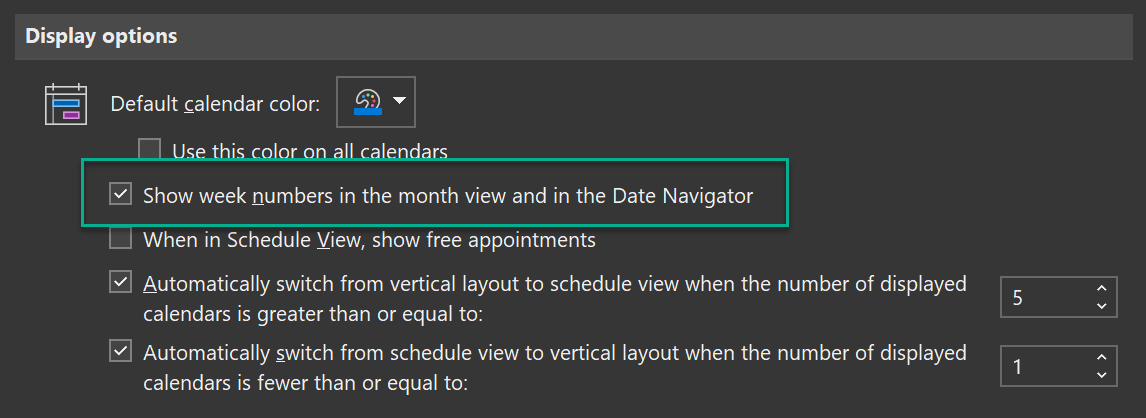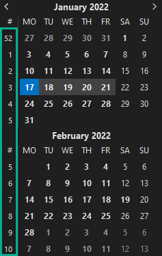 2. Enabling week numbers in the calendar date/month navigator